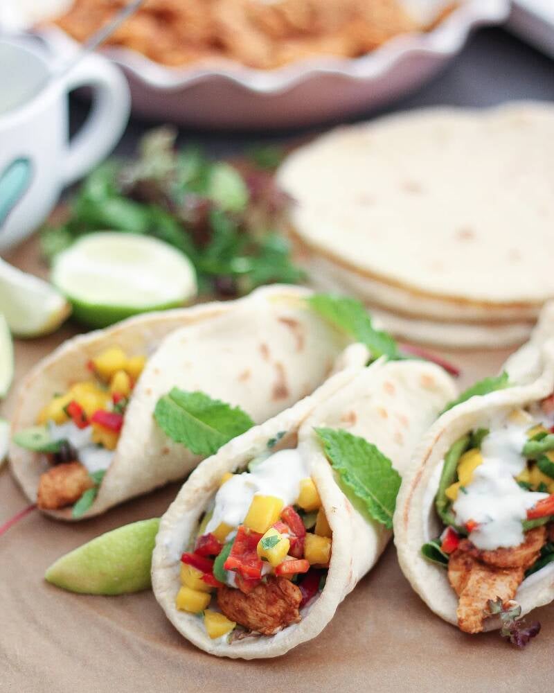 Eigenlijk zijn ze met elke vulling lekker. Zo heb ik eerder recepten met jullie gedeeld voor Sweet Chili Salmon Taco's en Tropical Flatbread Chicken Wraps.