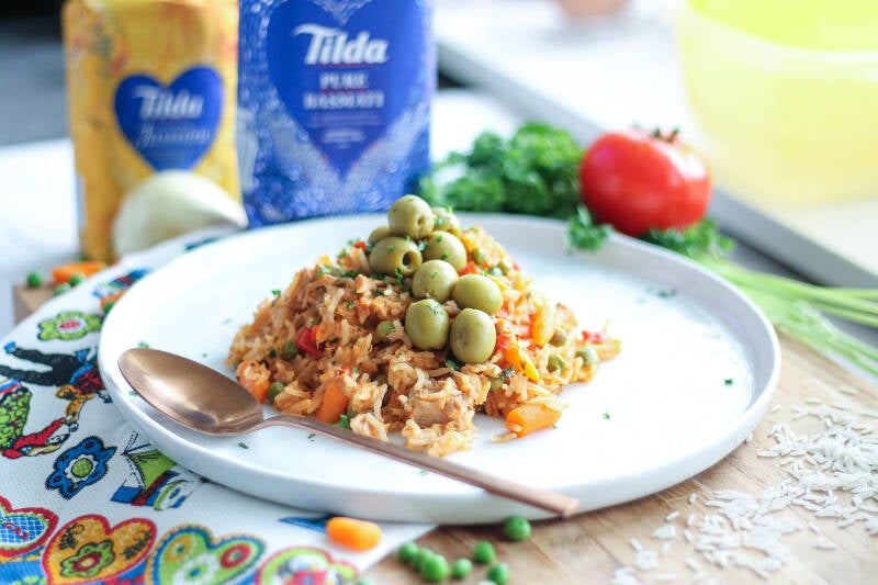 Arroz de Atúm wordt vrijwel altijd met groene olijven geserveerd, maar een frisse salade ernaast is ook heerlijk. Ik heb voor dit recept bewust gekozen voor de Pure Original Basmati rijst van Tilda. Je hebt hiervoor namelijk een witte plakkerige rijstsoort nodig. De Fragrant Jasmine Rice is ook heel geschikt. Dit gerecht kent een andere bereiding dan risotto, maar lijkt er qua romigheid wel een beetje op.